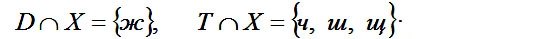 Соответственно, два неравных множества отличаются, по крайней мере, одним своим элементом (X≠ {ж, ш, ч}).