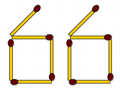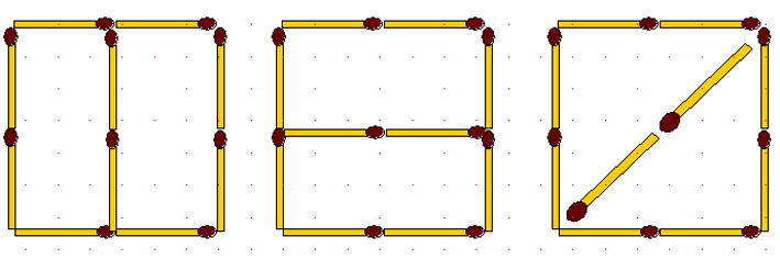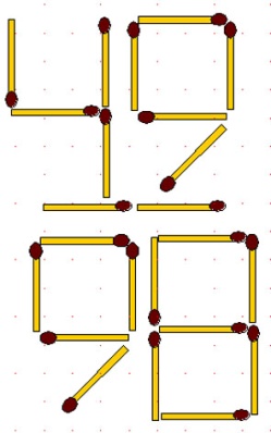 б) переложите 4 спички так, чтобы получилось 3 равных квадрата;