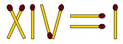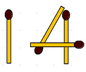 1-4. На рисунке из 4 спичек сложено число 14. Переложите только одну спичку так, чтобы получилась тысяча.