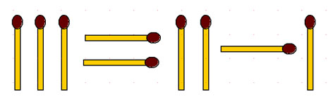 1-32. Превратите это арифметическое выражение в истинное равенство или неравенство, взяв или переложив 1 спичку. Есть много решений.
