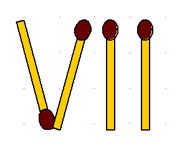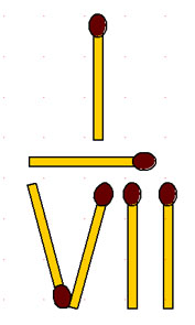 1-12. На рисунке из спичек образовано число 57 в римской нумерации. Переместив две из них, не сдвигая остальных, получите 0. Есть два различных решения.