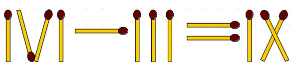 Подобных задач можно придумать сколько угодно. Методика их составления очень проста: выкладываете спичками верное равенство, а потом перекладываете одну из них, как-нибудь похитрее. Задача готова.