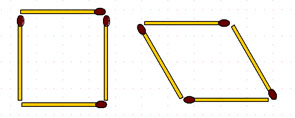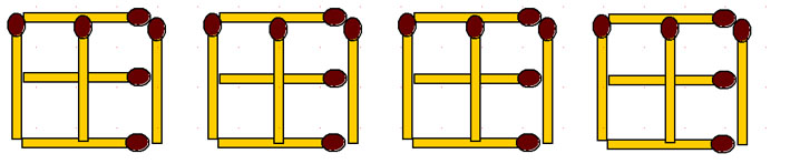 2-7. Возьмите 4 спички и расположите их таким образом, чтобы они образовали четыре прямых угла. (Кроме конфигурации из предыдущей задачи.) Когда это сделано, переложите одну спичку так, чтобы при новом расположении спички ограничивали квадрат. Сколько различных первоначальных положений четырех спичек возможно в этой задаче?