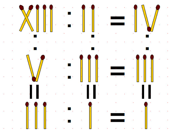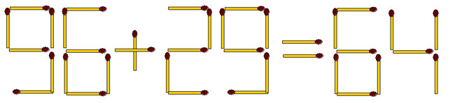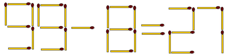1-38. Во всех следующих арифметических выражениях нужно добиться истинности равенств, переложив всего по одной спичке.