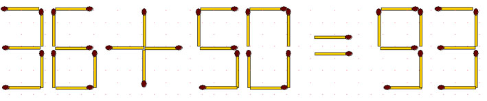 1-52. Девятнадцатью спичками выложено неверное числовое выражение. Требуется переложить всего 3 спички так, чтобы получилось правильное равенство.
