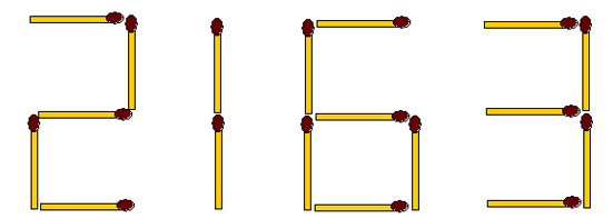 1-54. В выложенной спичками записи числа 2163 переложите 3 спички таким образом, чтобы получилась запись числа 1995.