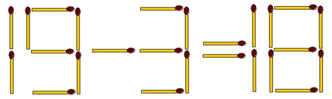 1-19. Из спичек сложено математическое выражение. И, конечно же, оно не верно. А вот как его исправить, чтобы выражение стало истинным, переложив всего 1 спичку?