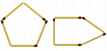 2-38. Переложите эти 12 спичек так, чтобы вдоль каждой стороны четырёхугольника их лежало не четыре, как сейчас, а пять.