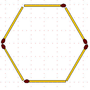 2-11. Составьте из 6 спичек шестиугольник с четырьмя острыми углами.