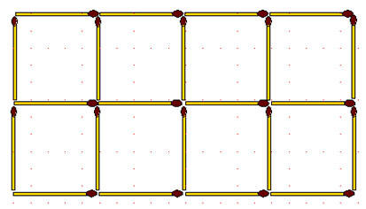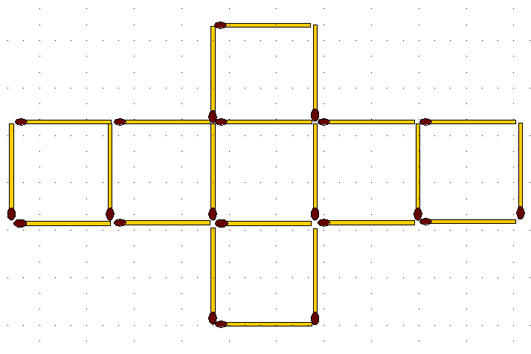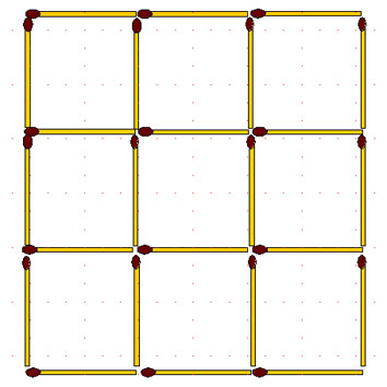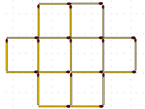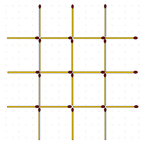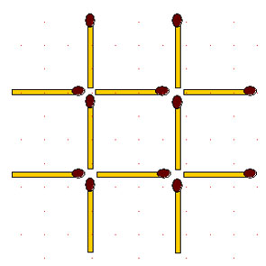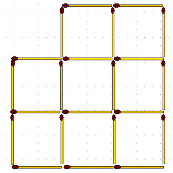ж) добавьте к исходной фигуре ещё 4 спички так, чтобы квадратов стало 9;