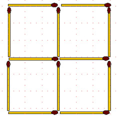 2-56. Переложите 7 спичек так, чтобы получилось 4 квадрата.