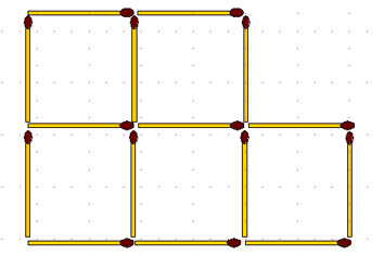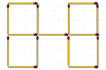 2-52. Из 18 спичек, составляющих 6 равных квадратов, отнимите 2 спички так, чтобы осталось 4 таких же квадрата.