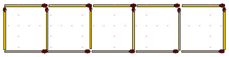 2-47. В пяти квадратах нужно переложить 4 спички так, чтобы получилось 4 квадрата равной величины.