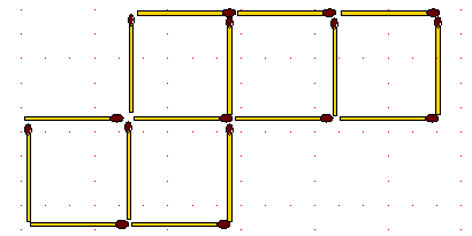 2-44. Спички расположены, как показано на рисунке. Переложите 2 спички так, чтобы получилось 5 равных квадратов.
