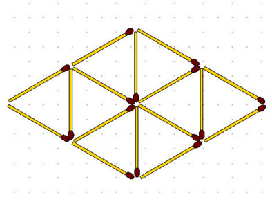 а) переложите 3 спички так, чтобы вместо фигуры из 6 равносторонних треугольников получилась фигура их 6 равных четырёхугольников;