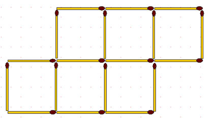 2-58. В изображенной фигуре, переложите 2 спички так, чтобы получилось 7 равных квадратов; затем, из полученной фигуры, уберите 2 спички так, чтобы осталось 5 квадратов.
