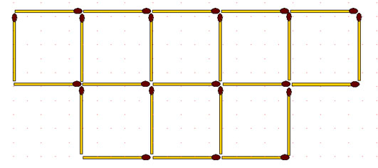 2-61. Уберите 4 спички так, чтобы оставшиеся спички образовали 5 квадратов, причём квадраты могут быть и не одинаковой величины.