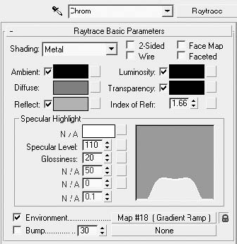 Рис. 4.40. Настройки параметров материала Raytrace (Трассировка) для хрома