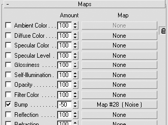 5. В свитке Maps (Карты текстур) щелкните на кнопке None (Отсутствует) рядом с картой Bump (Рельефность).