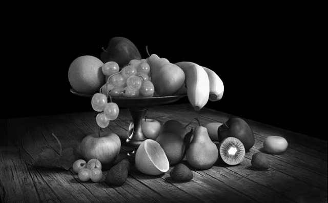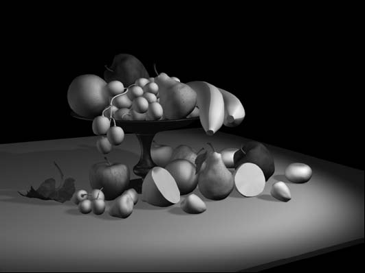 Для выполнения упражнения вам понадобится продолжить работу с созданной в гл. 2 сценой натюрморта. Вы также можете загрузить сцену fruits_start.max, расположенную на прилагаемом к книге DVD в папке ExamplesГлава 04Fruits.