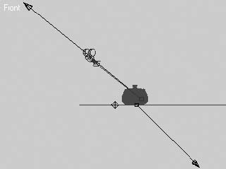 2. Постройте в окне проекции Top (Cверху) источник света таким образом, чтобы луч проходил через примитив Teapot (Чайник). Сразу подкорректируйте положение источника света и его цели и в других окнах проекций.