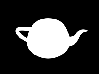 Откройте сохраненный файл в программе растровой графики, допустим Adobe Photoshop, и, выделив альфа-канал, залейте его белым цветом. Если фон не черного цвета, то инвертируйте выделение и залейте все остальное черным цветом (то есть объекты сцены должны быть белыми, а фон черным, как показано на рис. 5.14).