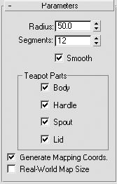 Рис. 5.19. Свиток Parameters (Параметры) настроек примитива Teapot (Чайник)