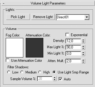 1. В области Noise (Зашумление) свитка Volume Light Parameters (Параметры объемного освещения) установите флажок Noise On (Включить шум).