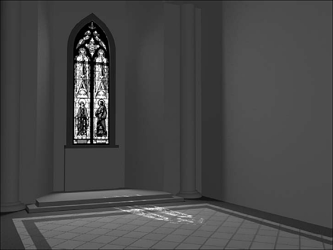 Вам не понадобится моделировать отдельные части витража – вы можете использовать растровое изображение stainglass.jpg, которое находится на прилагаемом к книге DVD в папке ExamplesГлава 05Volume_light.