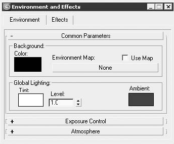 Чтобы получить доступ к настройкам окружающей среды, выполните команду Rendering ? Environment (Визуализация ? Окружающая среда). В результате откроется окно Environment and Effects (Окружающая среда и эффекты) на вкладке Environment (Окружающая среда). Рассмотрим свитки настроек данного окна.