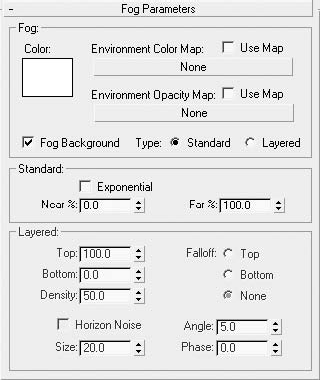 Рис. 8.12. Свиток Fog Parameters (Параметры тумана) вкладки Environment (Окружающая среда) окна Environment and Effects (Окружающая среда и эффекты)
