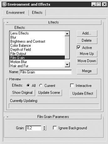 Рис. 8.15. Вкладка Effects (Эффекты) окна Environment and Effects (Окружающая среда и эффекты)