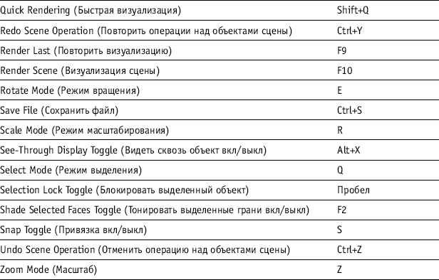 Приложение 2. Основные сочетания клавиш 3ds Max 2008