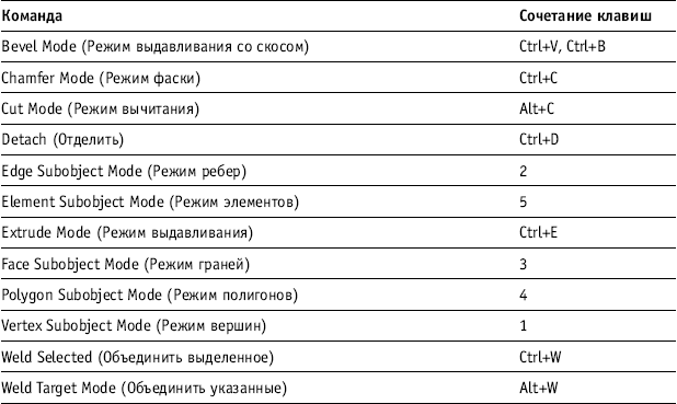Сочетания клавиш для работы с Editable Poly (Редактируемая полигональная поверхность)