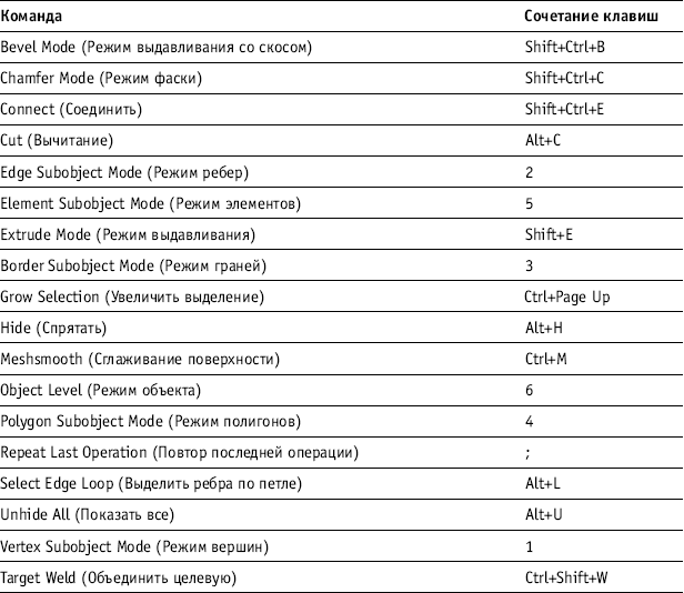 Сочетания клавиш для работы с Editable Mesh (Редактируемая поверхность)