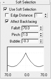 Рис. 2.41. Свиток Soft Selection (Плавное выделение) с параметрами выделения вершин сферы