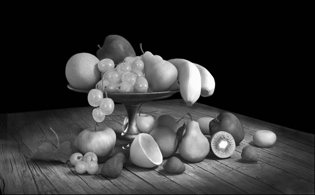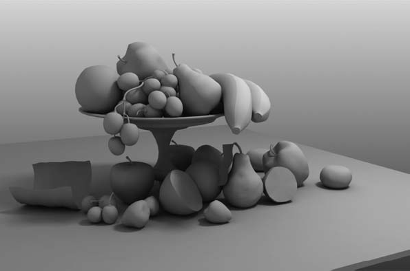 Мандарин, как и некоторые другие объекты, можно построить путем редактирования вершин на уровне подобъектов модификатора Edit Mesh (Редактирование поверхности). В большинстве случаев такой подход дает максимальный контроль над созданием объектов сцены и, как следствие, лучший результат. На рис. 2.63 представлен натюрморт, который получился после создания дополнительных объектов.