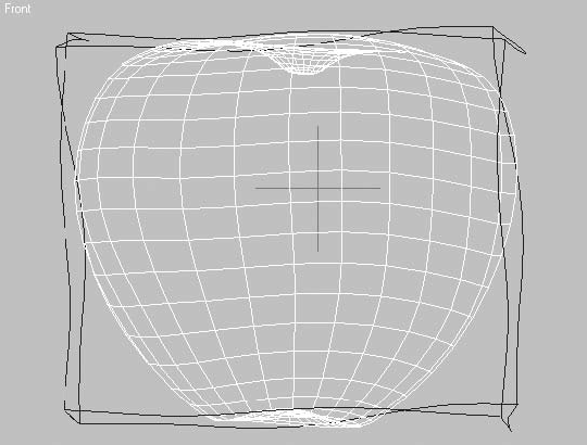 Рис. 2.45. Модель яблока с габаритным контейнером Гизмо после применения модификатора Noise (Шум)