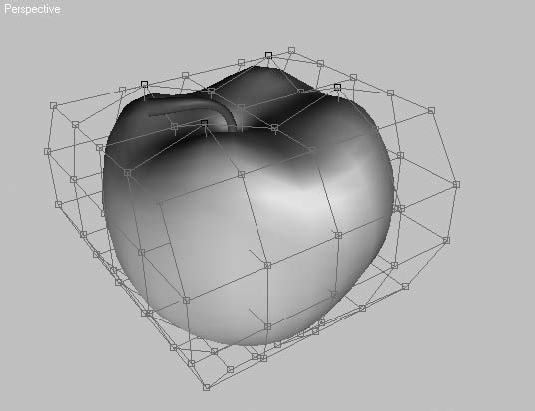 7. Выделите в нижнем ряду такие же четыре точки произвольно деформируемого контейнера и сместите их немного вниз для получения окончательной формы яблока (рис. 2.54).