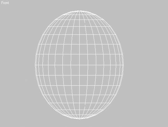 масштабируйте сферу в вертикальной плоскости так, чтобы она приобрела вытянутую форму (рис. 2.56). При желании ее можно уточнить, используя дополнительно модификаторы поверхности.