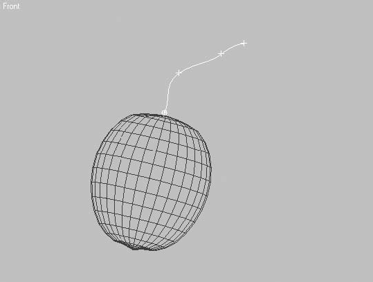 3. В окне проекции Front (Спереди) известным вам способом постройте сплайн, который послужит формой пути лофт-объекта для хвостика, находящегося в верхней части ягоды (рис. 2.57).