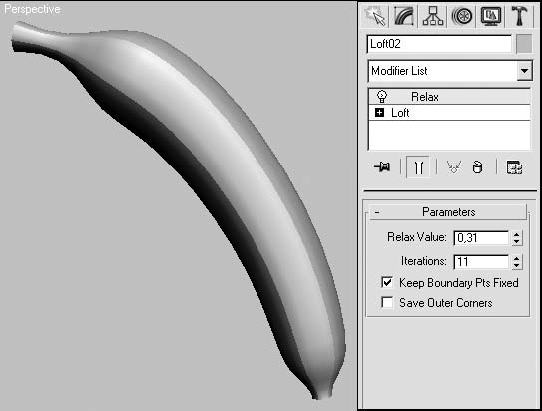 8. Чтобы сгладить резко очерченные грани модели, необходимо применить модификатор Relax (Ослабление), выбрав его из списка модификаторов на вкладке Modify (Изменение).