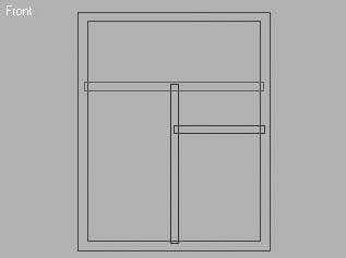 Чтобы окно было не совсем простым, создайте вертикальную и горизонтальную перемычки для створок окна и небольшую перемычку для форточки. Для этого повторите операции, аналогичные тем, с помощью которых вы добавляли проемы окон и дверей к стене. Только сейчас создайте прямоугольники как отдельные объекты, а потом при помощи команды Attach (Присоединить) присоедините их к раме. Изображение, которое получилось у меня, приведено на рис. 3.6.