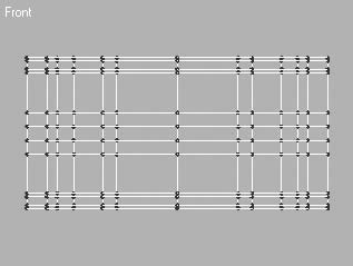 свитка Selection (Выделение). В окне проекции Front (Спереди) передвиньте 2, 4 и 9, 11 ряды согласно рис. 3.16.