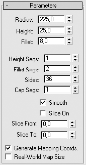 Рис. 3.23. Параметры объекта Chamfer Cylinder (Цилиндр с фаской)