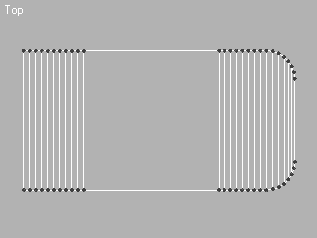 2. Щелкните на кнопке Vertex (Вершина) в свитке Selection (Выделение) настроек сплайна на командной панели, чтобы перейти на уровень подобъектов, и выберите в окне проекции Top (Сверху) две угловые вершины.