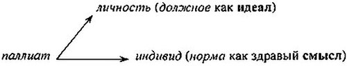 Паллиат в прямом значении латинского слова palliatus ‘одетый в плащ’ – индивидуум в ризах личности. Паллиат – это человек, т. е. социальный индивид. Однако скольжение взгляда изменяет не структуру культурной парадигмы, а доминантность совмещенных категорий: «В каждой цивилизации присутствуют все три слоя. Разница лишь в доминанте» [Там же: 285]. Блуждающий нерв категории сохраняет все типы в пространстве инварианта, создает внутреннюю динамику дальнейшего развертывания парадигмы, давая выбор предпочтений. Утроенность имен производит впечатление растроенности парадигмы, включенной в концепт на правах такого инварианта, но, в конце концов, это всего лишь слова, слова, слова... за которыми скрыта сущность, непозволительная для смертного, который блуждает в этих трех соснах, покрытый темным плащом воображения.