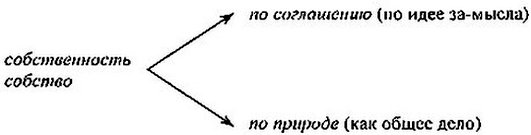 Собственность-вещь принадлежит тебе по природе (натурально) и по соглашению (культурно). Но и слово явлено в мир и по природе, и по соглашению с другими (древнейший спор о происхождении слов). Таким образом: