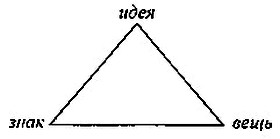 «Семантический треугольник» современных семиотиков, по происхождению продукт средневековой схоластики, схематически показывает, что вещь, этой вещи идея и обозначающее такую идею слово (знак) составляют как бы зримые углы треугольника, связанные сторонами взаимных отношений: