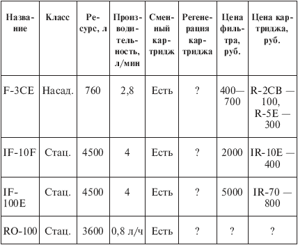 Таблица 5.23. Фильтры фирмы «Brita»